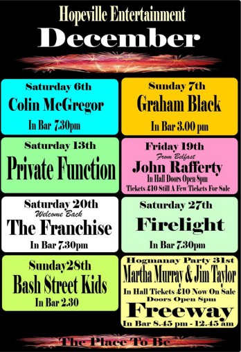 See the full entertainment line up for the coming months on the Entertainment Page